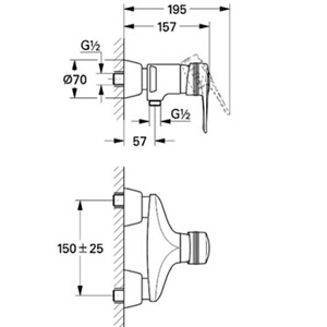 Змішувач для душу настінний змішувач Grohe колекція Europlus хром 33577000