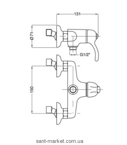 Змішувач для душу настінний змішувач Bugnatese колекція Lem золото LEMDO1938