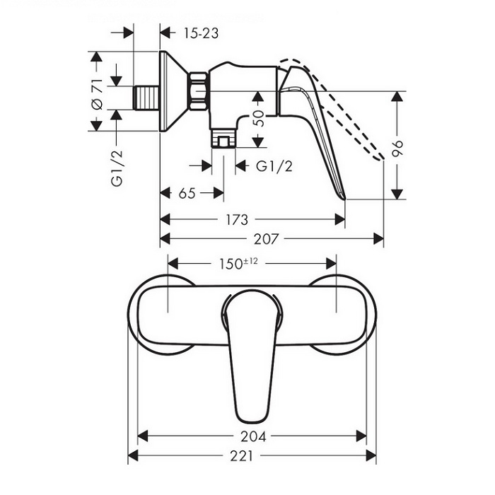 Змішувач для душу настінний змішувач Hansgrohe колекція Novus хром 71060000