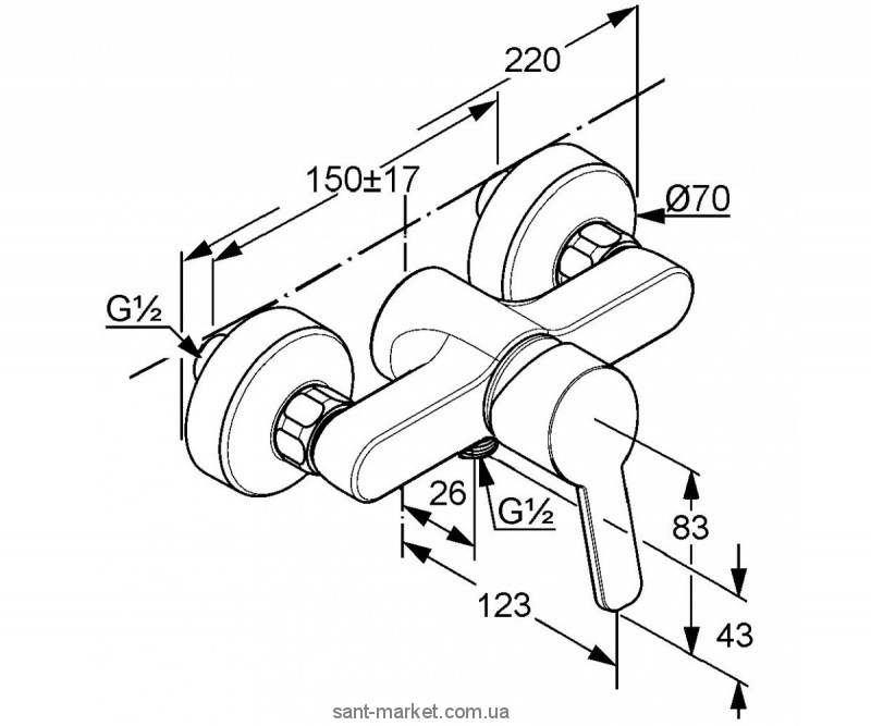 Змішувач для душу настінний змішувач Kludi колекція Logo Neo хром 378410575