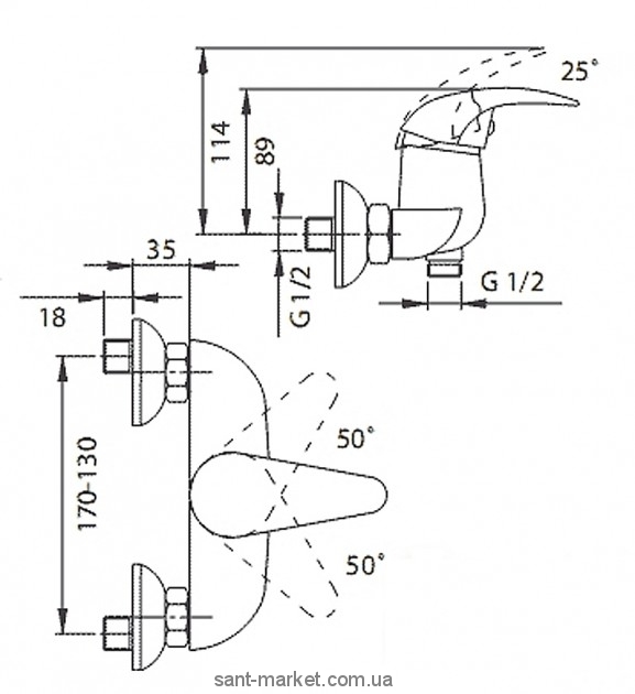 Змішувач для душу настінний змішувач Ferro колекція Ancona з душовим набором хром BAN77