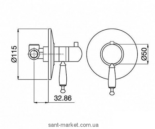Змішувач для душу з термостатом прихованого монтажу Bugnatese колекція Oxford золото OXDO6377