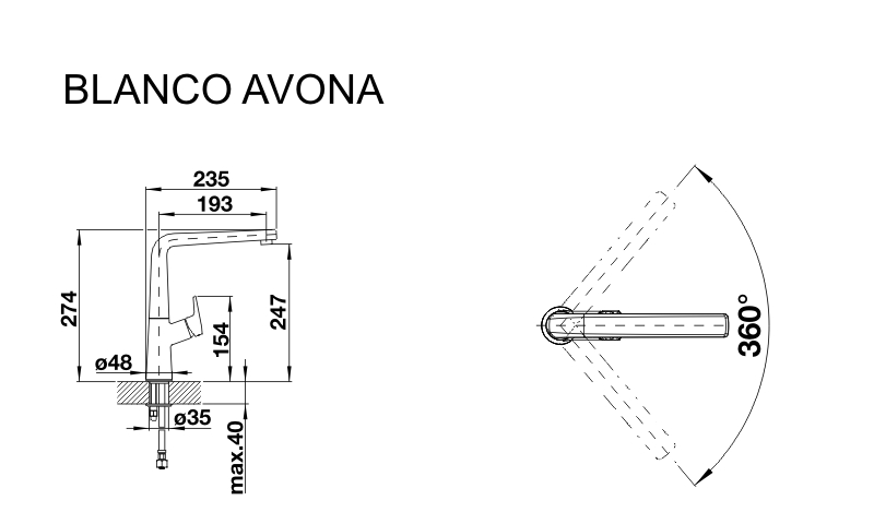 Стильний змішувач Blanco Avona - це ексклюзивна новинка з витонченим дизайном, який поєднує округлі вигини і прямі лінії. Високий поворотний виливши з радіусом обертання 360˚ розширює функціональні можливості приладу. Змішувач буде відмінно поєднуватися з мийками в стилі хай-тек з матеріалу SILGRANIT®.