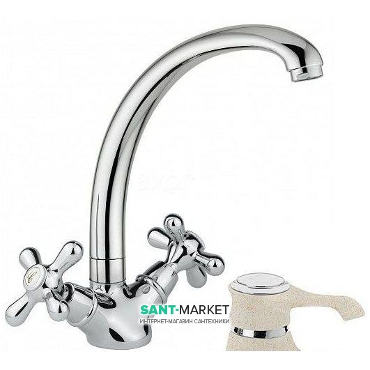 Змішувач для кухні Emmevi Deco Classic двухвентильний ретростиль бежевий граніт GBE12717