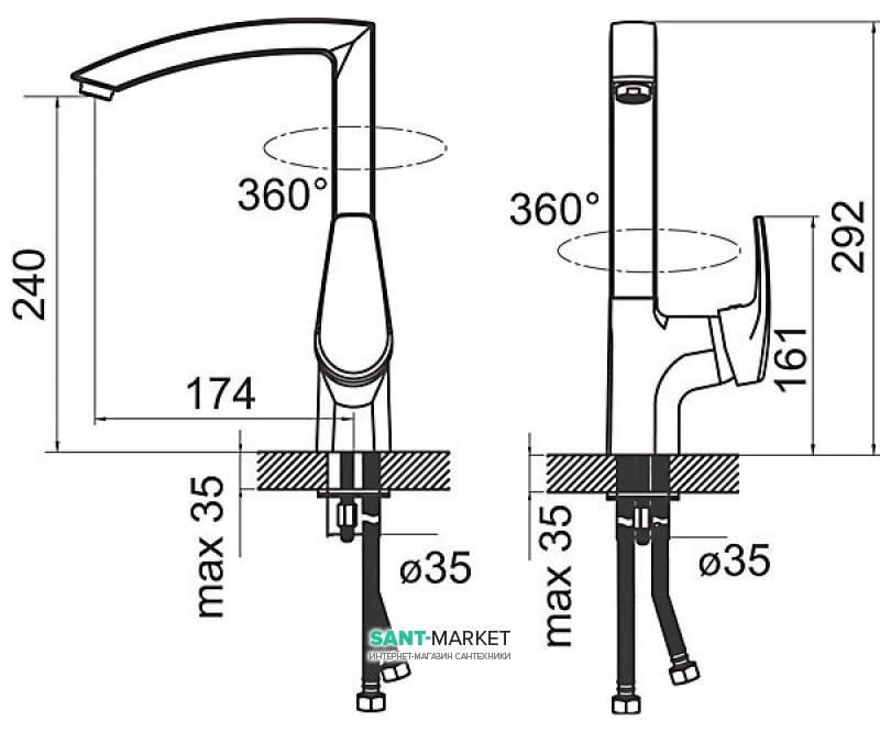 на мийку (вертикальний)