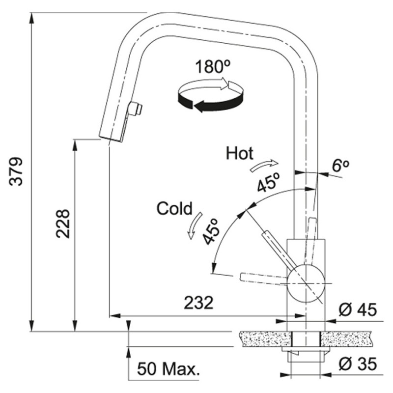 Все змішувачі Франке встановлюються вотвір діаметром 35 мм.