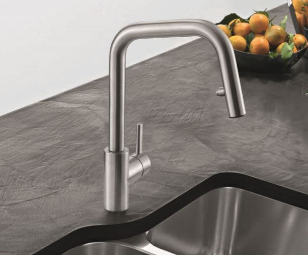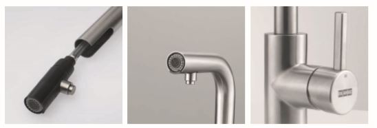 Franke Kubus Pull Out Spray лаконічний кухонний змішувач з висувним виливом з високоміцної нержавіючої сталі AISI 304. Одне захватна модель з важелем збоку має довгий і високий виливши, відповідний для наповнення великогабаритних ємностей ідеально поєднується з мийками серії Kubus.