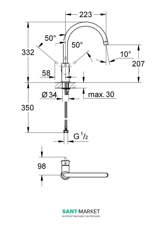 на мийку (вертикальний)