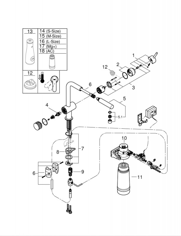 Комплект Grohe Blue Minta Pure складається з: