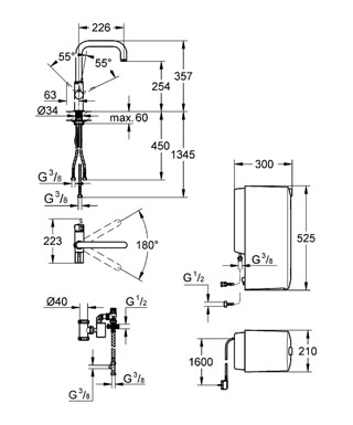 - Система кип'ятіння води GROHE Red подає як киплячу воду, так і гарячу та холодну водопровідну воду. Кипляча та змішана вода тече по двох роздільних трубах у систему GROHE Red і виходить через дві роздільні зони аератора. Накопичувач окропу служить для нагрівання і накопичення питної води в напірних системах. Накопичувач окропу придатний для підключення до водопровідної мережі з максимальним тиском води 0,8 МПа (8 бар). Підключення до гарячої води не передбачено.