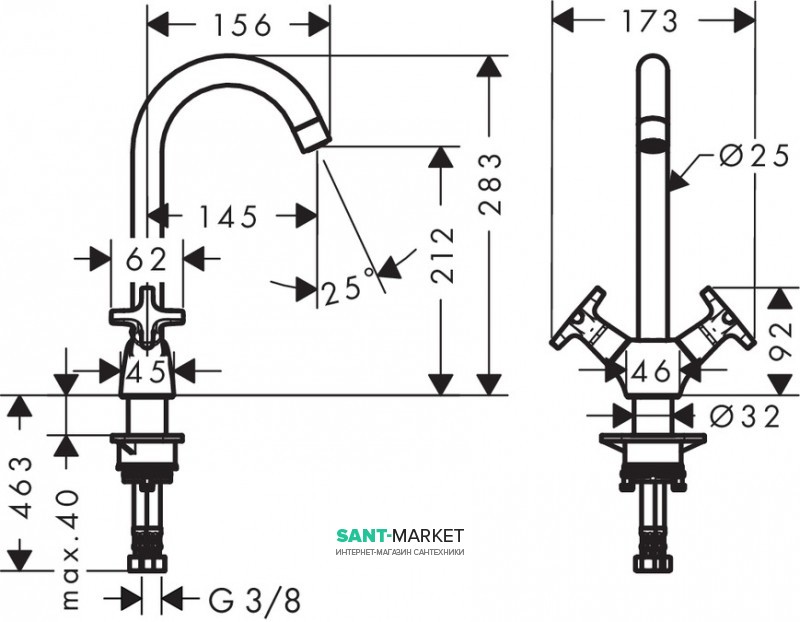 Змішувач для кухні Hansgrohe Logis двухвентильний 71285000