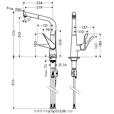 Опис змішувача для кухні Hansgrohe Metris (14822000)