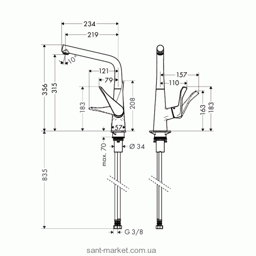 Опис змішувача для кухні Hansgrohe Metris (14822800)