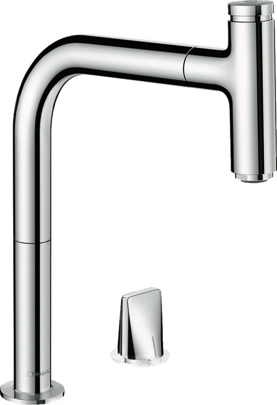 Змішувач для кухні Hansgrohe Metris Select M71 200 1jet sBox з витяжним виливом змішувач на 2 отвори хром 73804000
