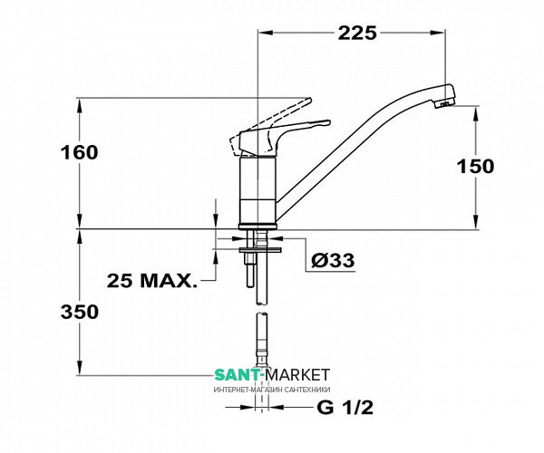 на мийку (вертикальний)