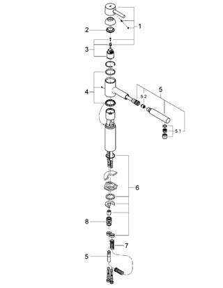 - ¦ висувний вилив з аератором зі зворотною пружиною