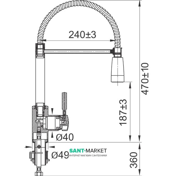 Змішувач для кухні Gessi Inedito під фільтр з висувною лійкою одноважільний матовий чорний 60572#299