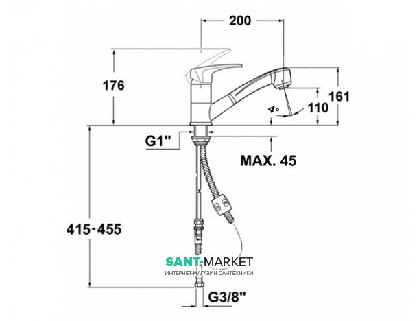 - Гнучкі шланги: 1/2" (вихід 3/8")