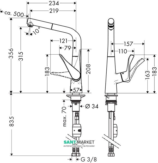 Опис змішувача для кухні Hansgrohe Metris (14821800)