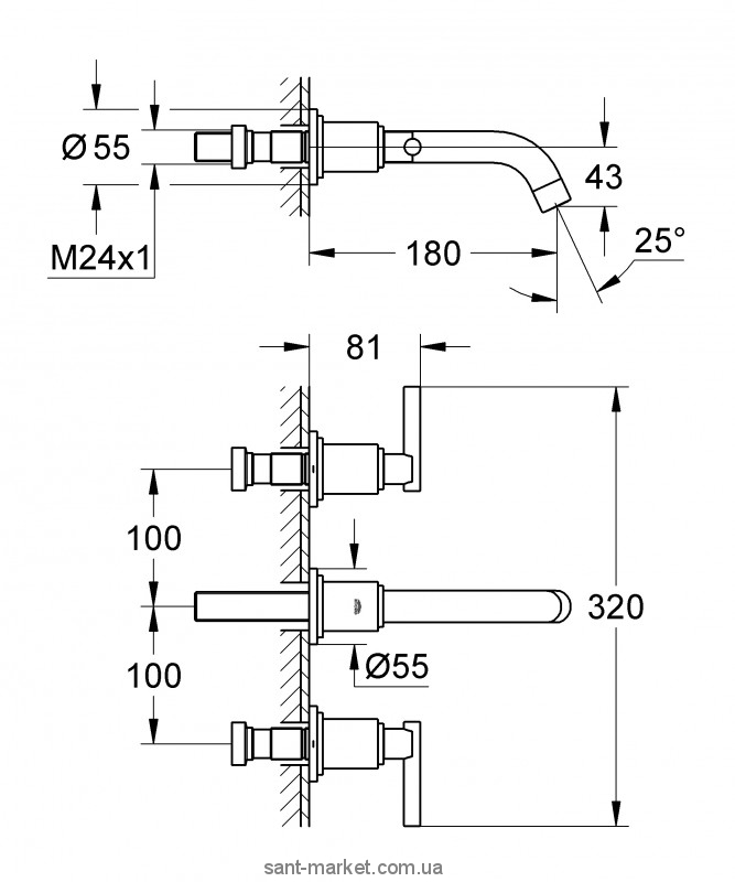 Змішувач для раковини Двохважеля настінний прихований Grohe колекція Atrio хром 20169000