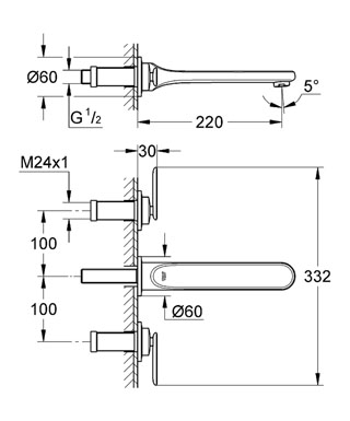 Змішувач для раковини Двохважеля настінний прихований Grohe колекція Veris хром 20195000