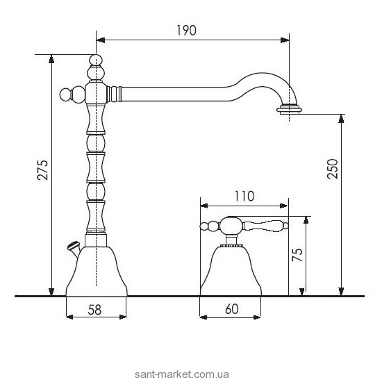 Змішувач для раковини Двохважеля з донним клапаном Giulini колекція Praga Crystal хром F7512A / S