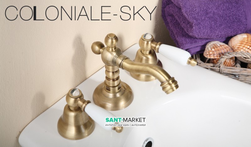 Змішувач для раковини Двохважеля з донним клапаном Fiore Margot Coloniale-Sky хром 03062301 Chrome