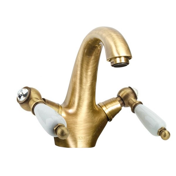 Змішувач для раковини Двохважеля з донним клапаном Fiore Margot Coloniale-Sky бронза 03062301 Old Bronze