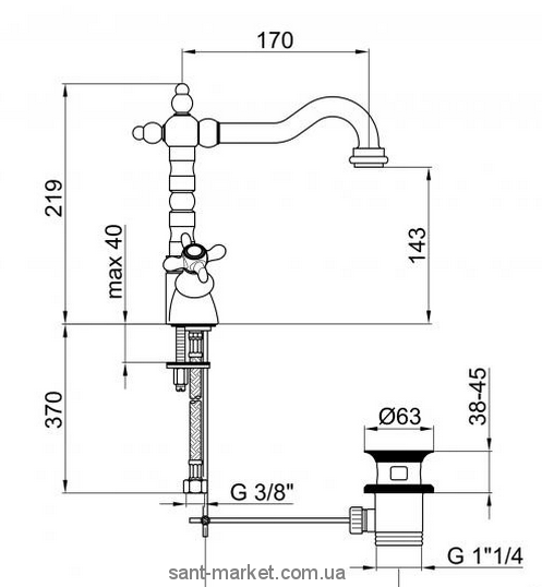 Змішувач для раковини Двохважеля з донним клапаном Webert колекція Ottocento хром OT700301.015