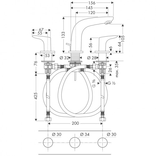 Hansgrohe Metropol E Змішувач для раковини на 3 отвори