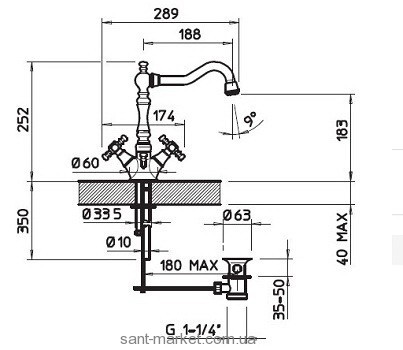 Змішувач для раковини двухвентильний Gessi колекція Ladolcevita бронза 7719 140