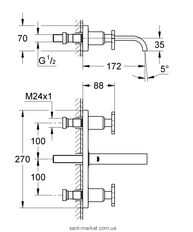 Змішувач для раковини двухвентильний настінний прихований Grohe колекція Allure хром 20190000