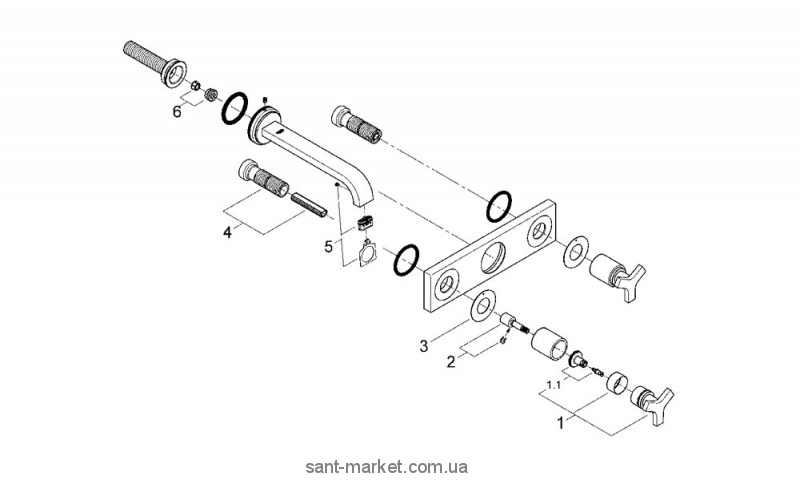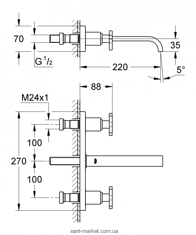 Змішувач для раковини двухвентильний настінний прихований Grohe колекція Allure хром 20192000