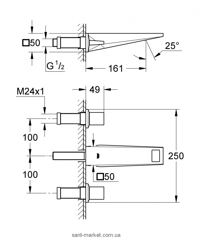 Змішувач для раковини двухвентильний настінний прихований каскадний Grohe Allure Brilliant хром 20346000
