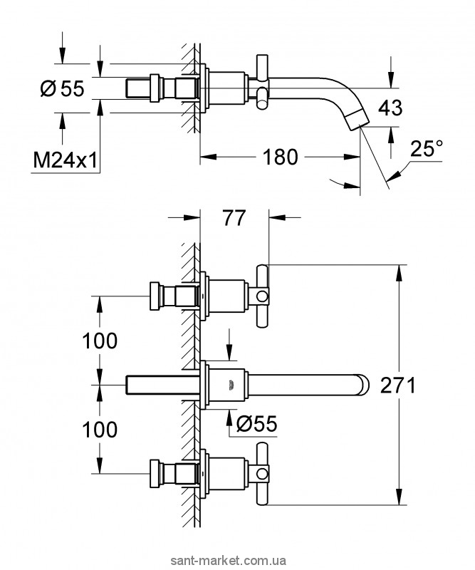 Змішувач для раковини двухвентильний настінний прихований Grohe колекція Atrio хром 20164000