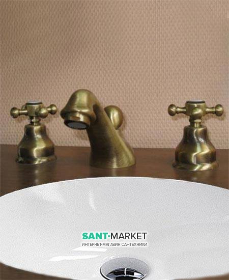 Змішувач для раковини двухвентильний прихований з донним клапаном EMMEVI Deco Classic бронза BR12033