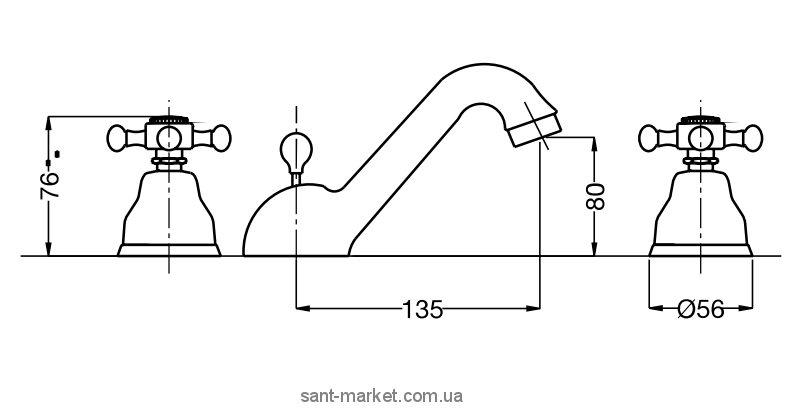 Конструкція зазначеного змішувача для раковини включає плавно вигнутий кран з помітно розширеною основою округлої форми. У верхній частині основи крана розташований оригінальний перемикач із крана на душ. Його форма краплеподібна, що дає можливість впевнено керувати перемикачем мокрою або мильною рукою. По обидва боки крана розташовані надійні хрестоподібні ручки для регулювання напору гарячої та холодної води. Завдяки їхній формі можна не боятися, що рука зісковзне, або що будуть надмірні зусилля.