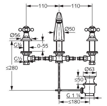 Змішувач для раковини двухвентильний прихований з донним клапаном Kludi Adlon золото 510434520