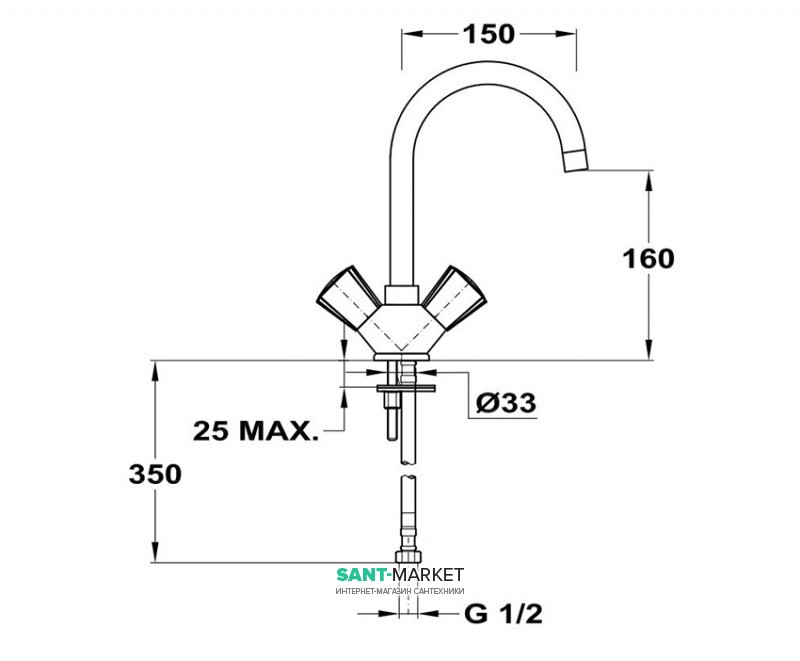 Змішувач для раковини двухвентильний високий Mofem колекція Golf хром 140-1263-00