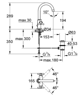 Змішувач для раковини двухвентильний з донним клапаном Grohe колекція Atrio хром 21033000