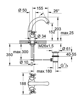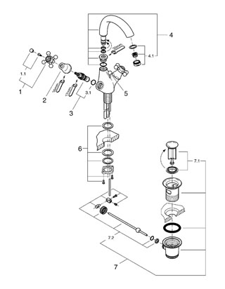 Змішувач для раковини двухвентильний з донним клапаном Grohe колекція Sinfonia хром 21014000