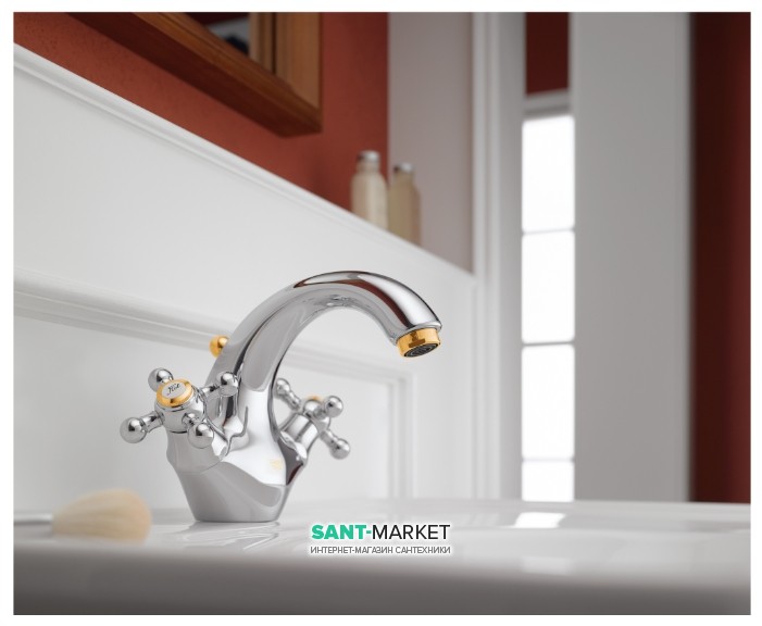 Змішувач для раковини двухвентильний з донним клапаном Grohe колекція Sinfonia хром / золото 21012IG0