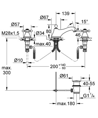 Змішувач для раковини двухвентильний з донним клапаном прихований Grohe Sinfonia хром / золото 20014IG0