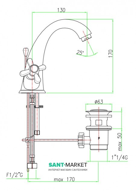 Змішувач для раковини двухвентильний з донним клапаном Fiore колекція Margot хром 26062301 Chrome