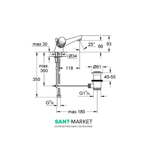 Одноважільний змішувач для умивальника двоважільний, настільний монтаж, керамічні вентилі 1/2", 180°, рукоятки теплоізольовані, пригвинчуються. Литий вилив з аератором, гнучка підводка, зливний гарнітур 1 1/4", хромована |
