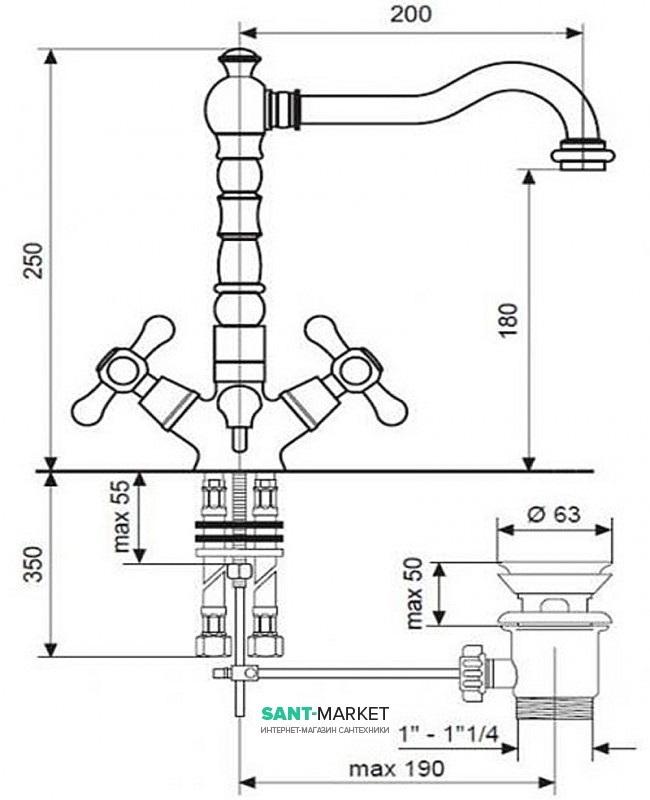 Змішувач для раковини двухвентильний з донним клапаном високий EMMEVI Deco Old бронза BR12613