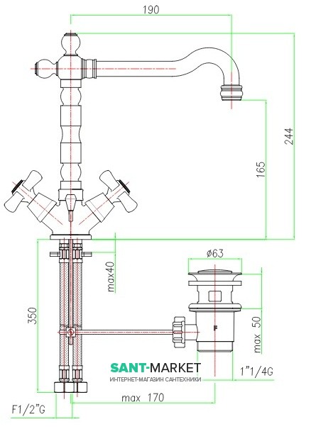 Змішувач для раковини двухвентильний з донним клапаном Fiore Margot золото 26G62501