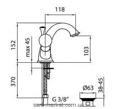 Змішувач для раковини двухвентильний з донним клапаном Webert Karenina золото KA700101.010