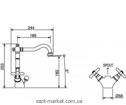 La Torre Leonardo II 23702R - двозахватний, для умивальника, корпус з латуні, вилив поворотний, заглушка для зливу в комплекті, насадка-аератор, горизонтальний монтаж