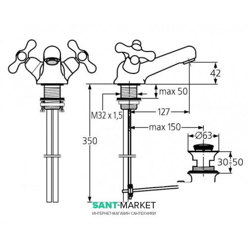 Змішувач для раковини двухвентильний з донним клапаном Ideal Standard Azimuth хром N9000AA